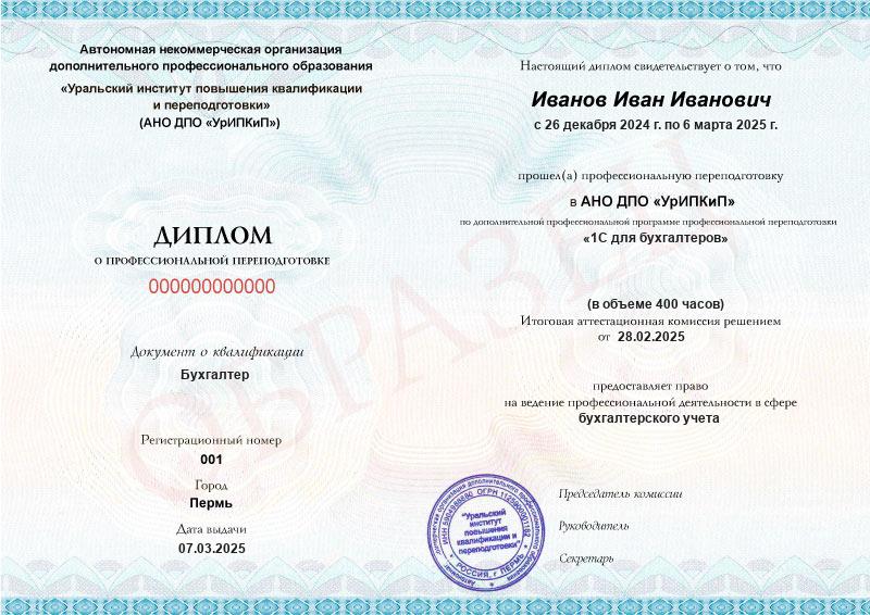 - Образец диплома о профессиональной переподготовке.