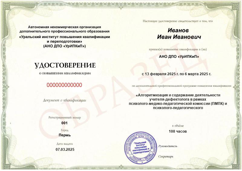 - Повышали квалификацию в АНО ДПО «УрИПКиП» – вам будет выдано удостоверение.