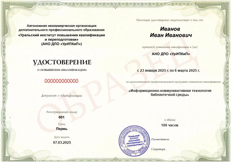 Заполненные образцы выдаваемых документов есть в описании учебных курсов и на странице «Лицензия. Документы», а также на главной странице официального сайта АНО ДПО «УрИПКиП».
