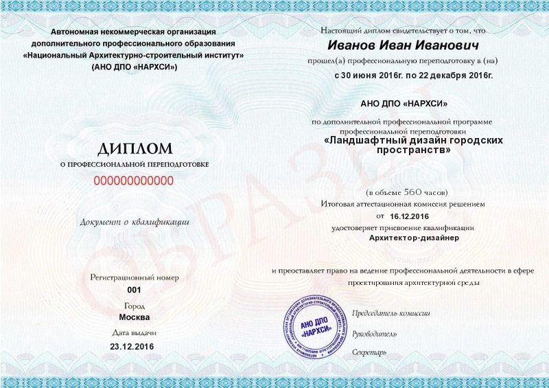 - Образец диплома о профессиональной переподготовке.