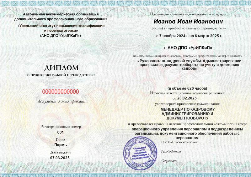- Образец диплома о профессиональной переподготовке.